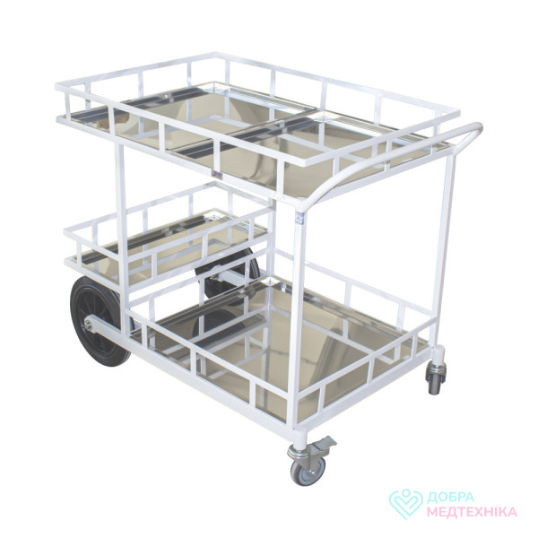 - Візок має борти висотою 100 мм для запобігання падінню приладдя під час транспортування.