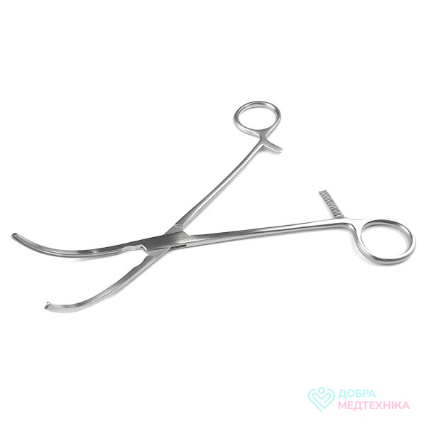 Затискач кровоспинний атравматичний вигнутий для анастомозу за Potts-Glover