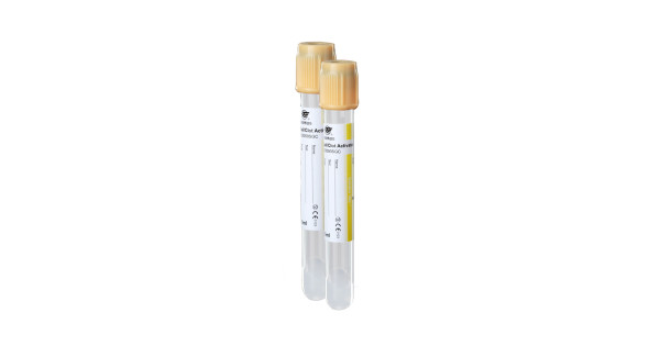 Пробірка для крові з жовтою кришкою, 13х100 мм, 6 мл крові, уп. 100 шт (гель та активатор згортання), AMED